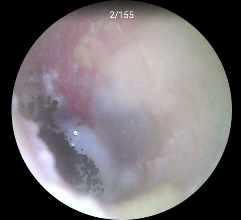 Aspergillus possibly Aspergillus niger. Caused due to moisture or water inside the ear. With the coming monsoon this is going to be a bigger issue. It might require more than one visit to clear out completely
